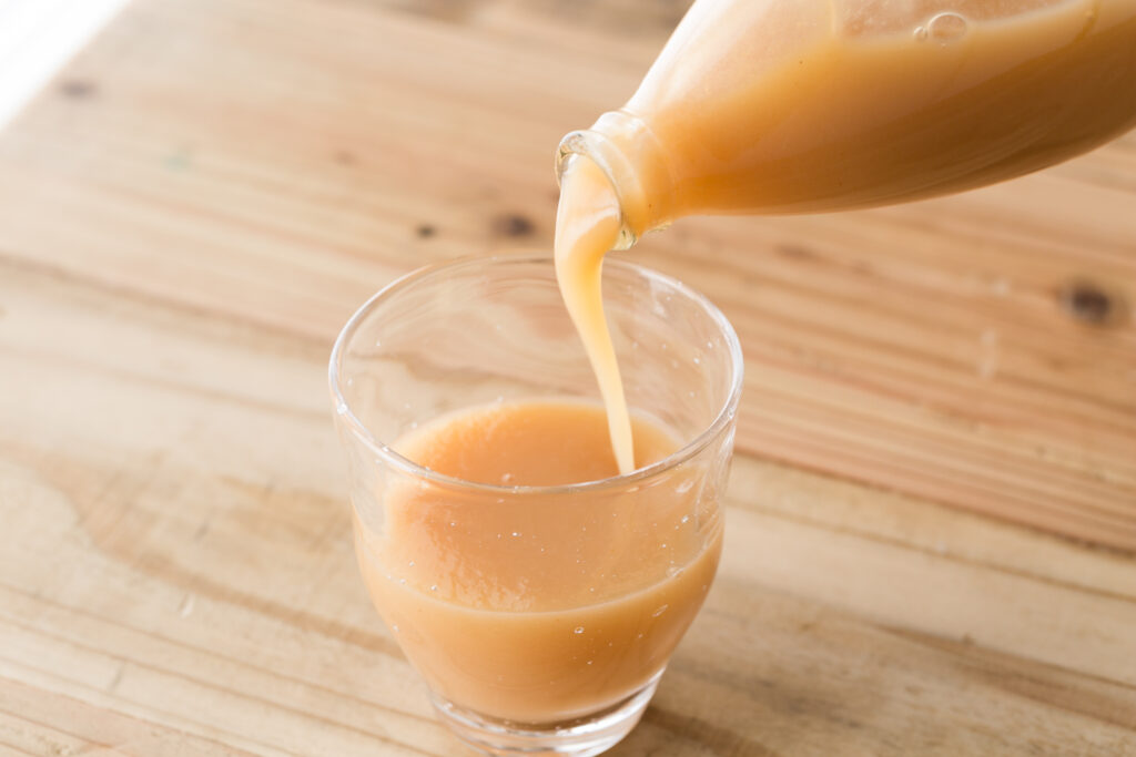 生果として流通には乗らない最もおいしい完熟のモモをふんだんに使用し、ジュースにしました。
