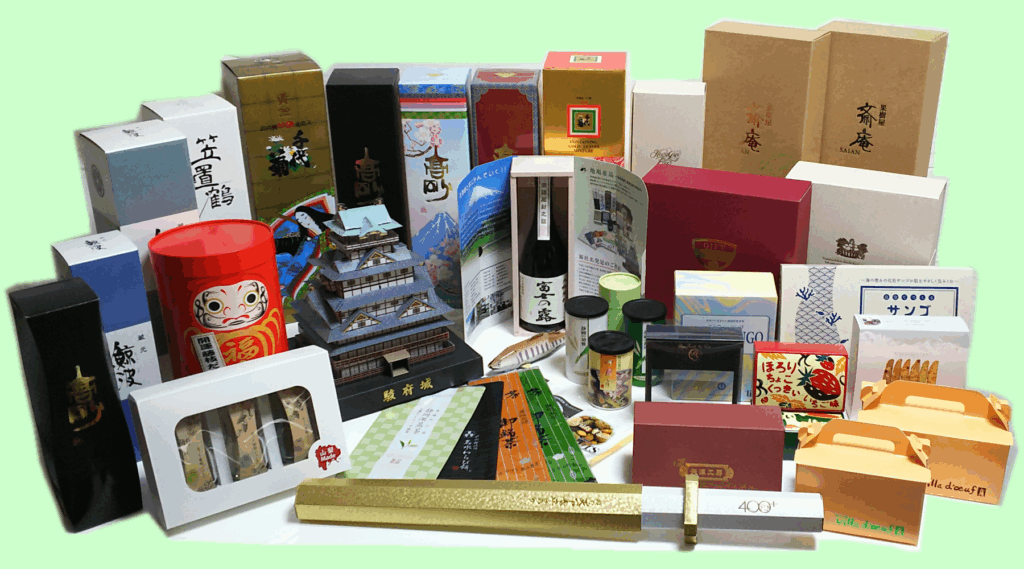 化粧箱・ラベル・袋(フィルムなどの一次包装~紙袋、ナイロン製袋、レジ袋などの手提げ袋)一次包装~外装までトータルパッケージの企画・デザイン・製造を行います。
