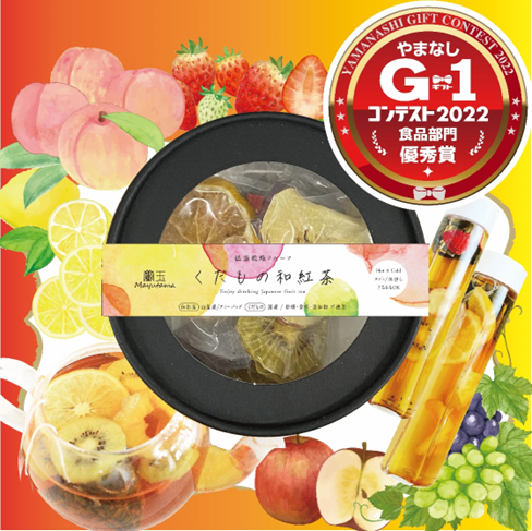 やまなしギフトコンテスト2022優秀賞受賞 第64回全国推奨観光土産品審査会 在東京ブータン名誉総領事館賞 ジャパンショッピングツーリズム協会賞 1.フルーツは全て山梨県産、和紅茶は国産(現在静岡県産)です。しかも砂糖やオイル添加物など全て無添加で安心安全です。