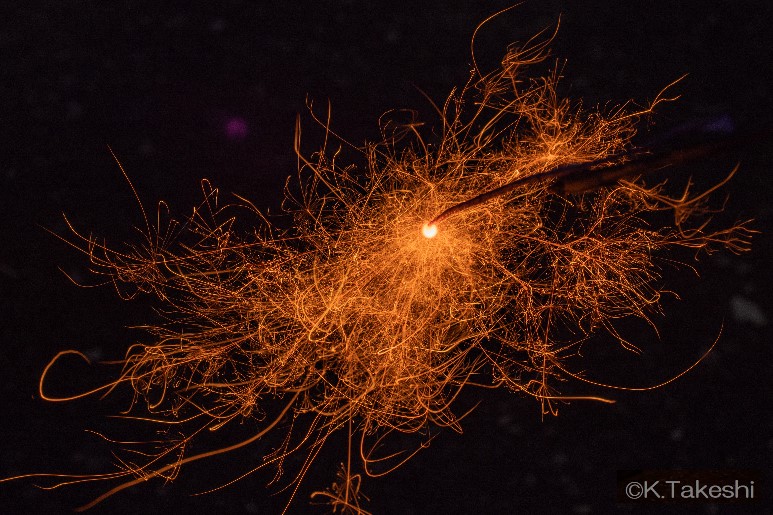 火薬の配合、製造ともに市川三郷町の線香花火。一般に流通する海外製線香花火より、大きく長く開く火花が特徴。