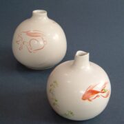 ふっくらした形は豊かさを、波を乗り越える”うさぎ”は繁栄と再生のシンボル。艶消しの胎に赤絵が特別な時を演出します。