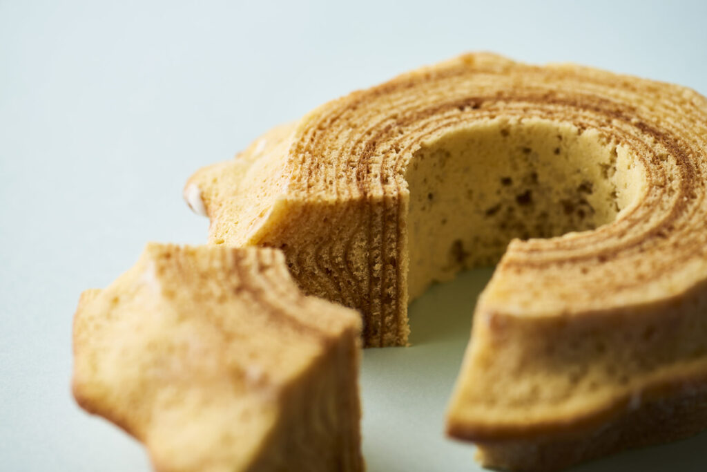 表面はサクッと、中はもっちりと。 北海道産発酵バターの風味豊かなハードタイプ。 バウムクーヘンの原型のようなクラッシックなスタイルは、 パティシエの技の見せどころ。 遠赤外線でこんがりとした焼き上がり。3度の日本一に輝いた逸品。