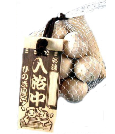 およそ直径35mm国産桧玉が13個 ツボ押し1個 杉の木の札付き 名湯の下枠には温泉名など印刷可能 香りが弱くなったらヤスリ等で表面を少し削ってください