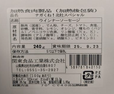 豚肉(国産)、でん粉、チーズ、トマト、食塩、砂糖、香辛料、レモン、オレンジ、種もの(バジル)